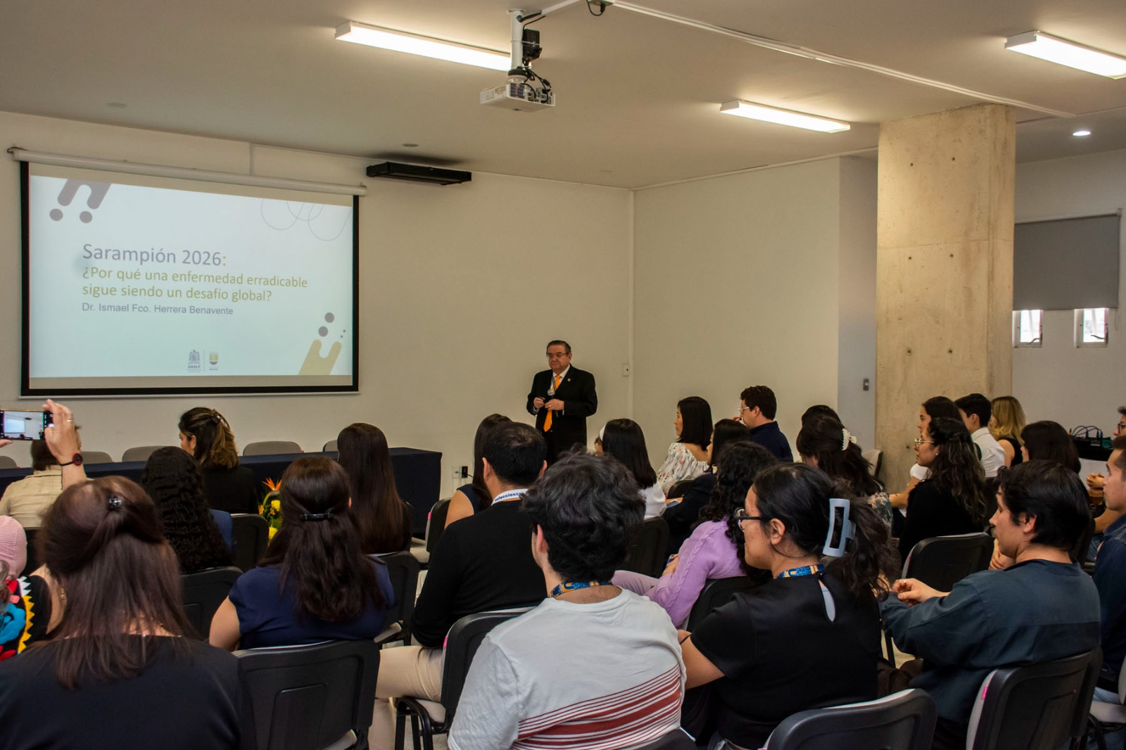 El sarampión representa un reto para la salud pública mundial pese a que existe una vacuna altamente efectiva para prevenirlo. Así lo señaló el doctor Ismael Herrera Benavente, director de la Facultad de Medicina de la Universidad Autónoma de San Luis Potosí (UASLP), al impartir la conferencia magistral “Sarampión en 2026: ¿por qué una enfermedad erradicable sigue siendo un desafío global?”, en el marco del décimo aniversario del Centro de Investigación en Ciencias de la Salud y Biomedicina (CICSaB).