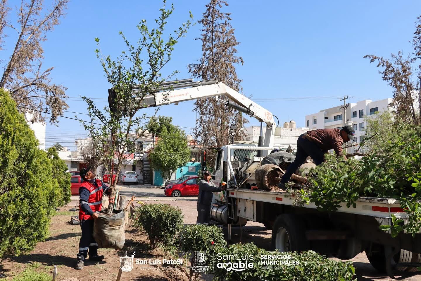 En atención a las instrucciones del Alcalde Enrique Galindo Ceballos, la Dirección de Servicios Municipales avanzó en la recuperación del tradicional espacio en la colonia Virreyes con la plantación de arbolado de mayor tamaño